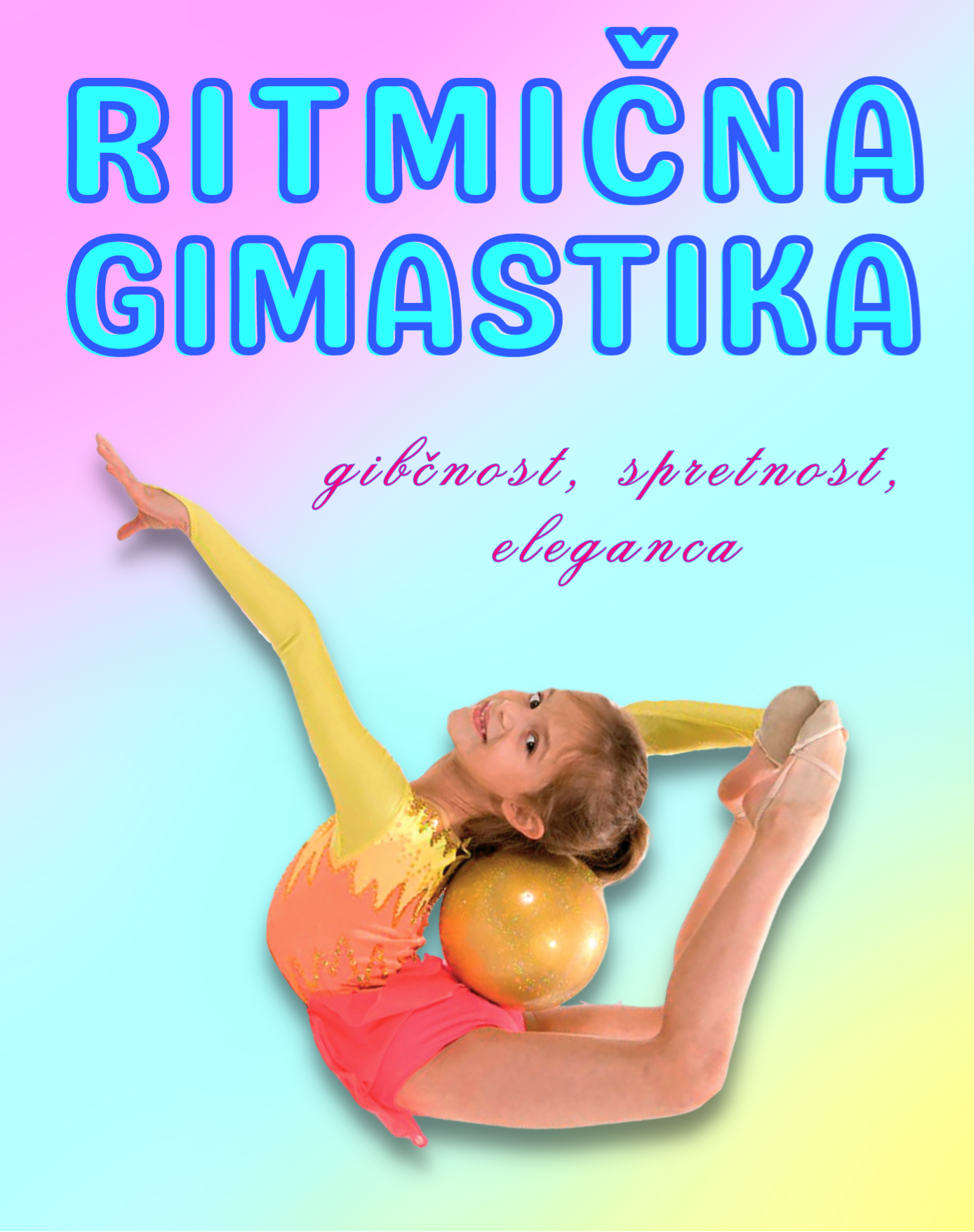 Ritmična gimnastika je športna panoga, ki združuje elemente akrobatike, plesa, gibanja in uporabo različnih rekvizitov, kot so trak, obroč, žoga, kiji in vrvica. Ta šport omogoča umetniško izražanje skozi elegantne in zapletene gibe, ki so sinhronizirani z glasbo. Ritmična gimnastika je izjemno priljubljena predvsem med deklicami in mladimi ženskami, saj združuje tehniko, estetiko in kreativnost. Preberi več...